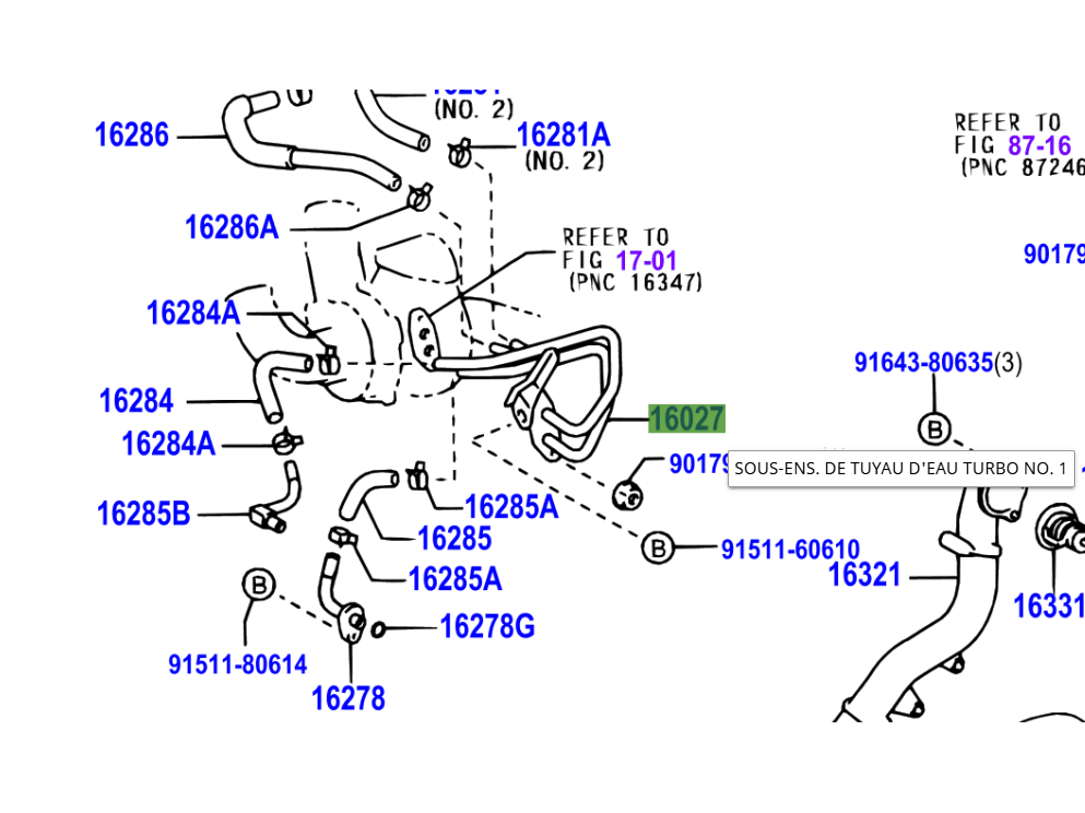 Pièce identifiée par la référence 16027 en surbrillance sur l'éclaté en photo